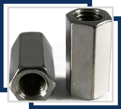 A corrosion-resistant product, Stainless Steel 317 coupling nuts, available in sizes from M6 to M36, connect two male threads securely. Their high resistance to pitting and chloride environments makes them suitable for harsh industrial applications.